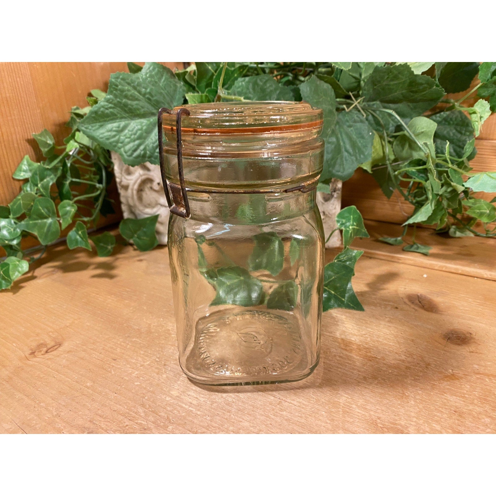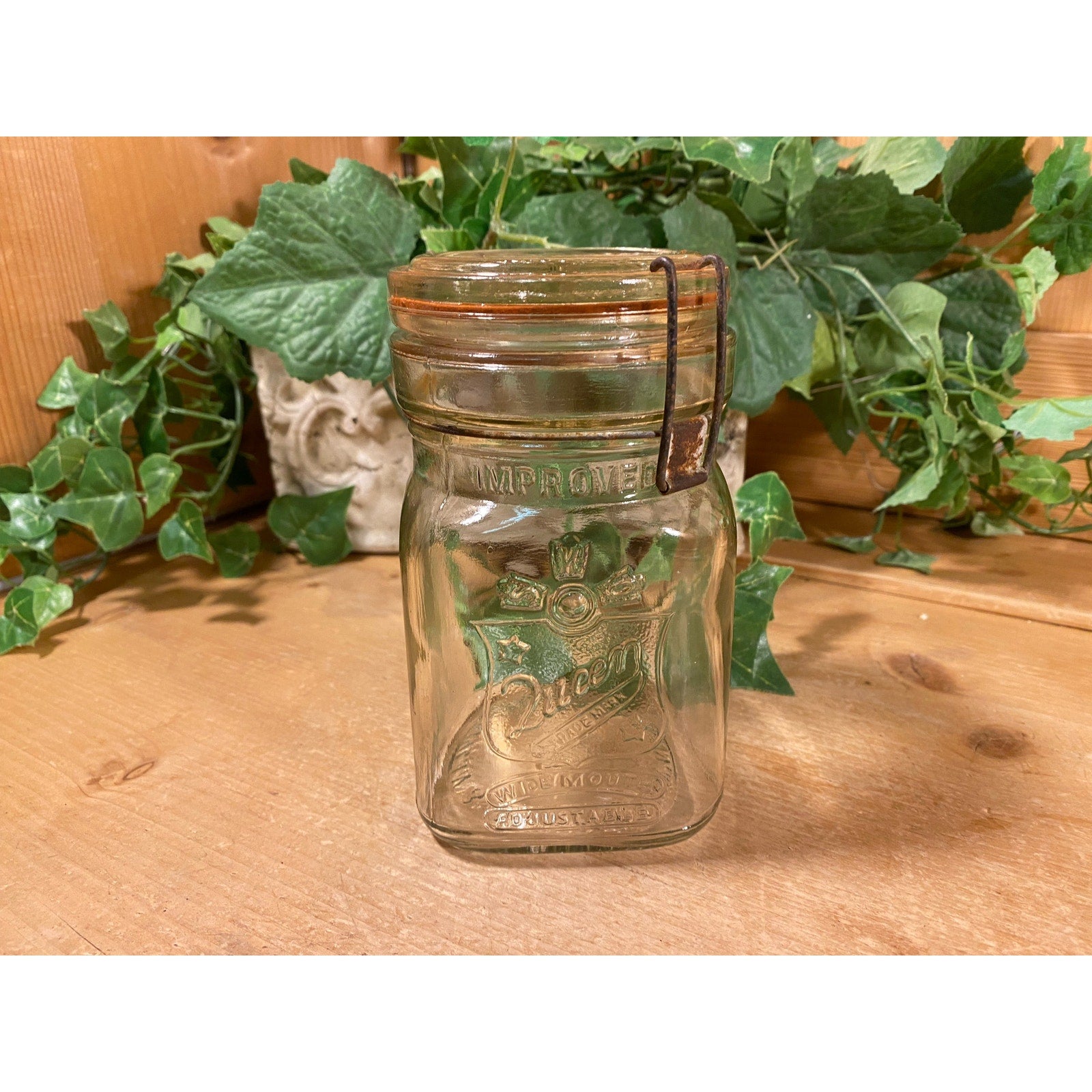 Antique Wide Mouth Square Queen Canning Jar with Kant Krack Lid | Wire Bale Lid | Vintage Glass Mason Jar | Primitives | Farmhouse Decor
