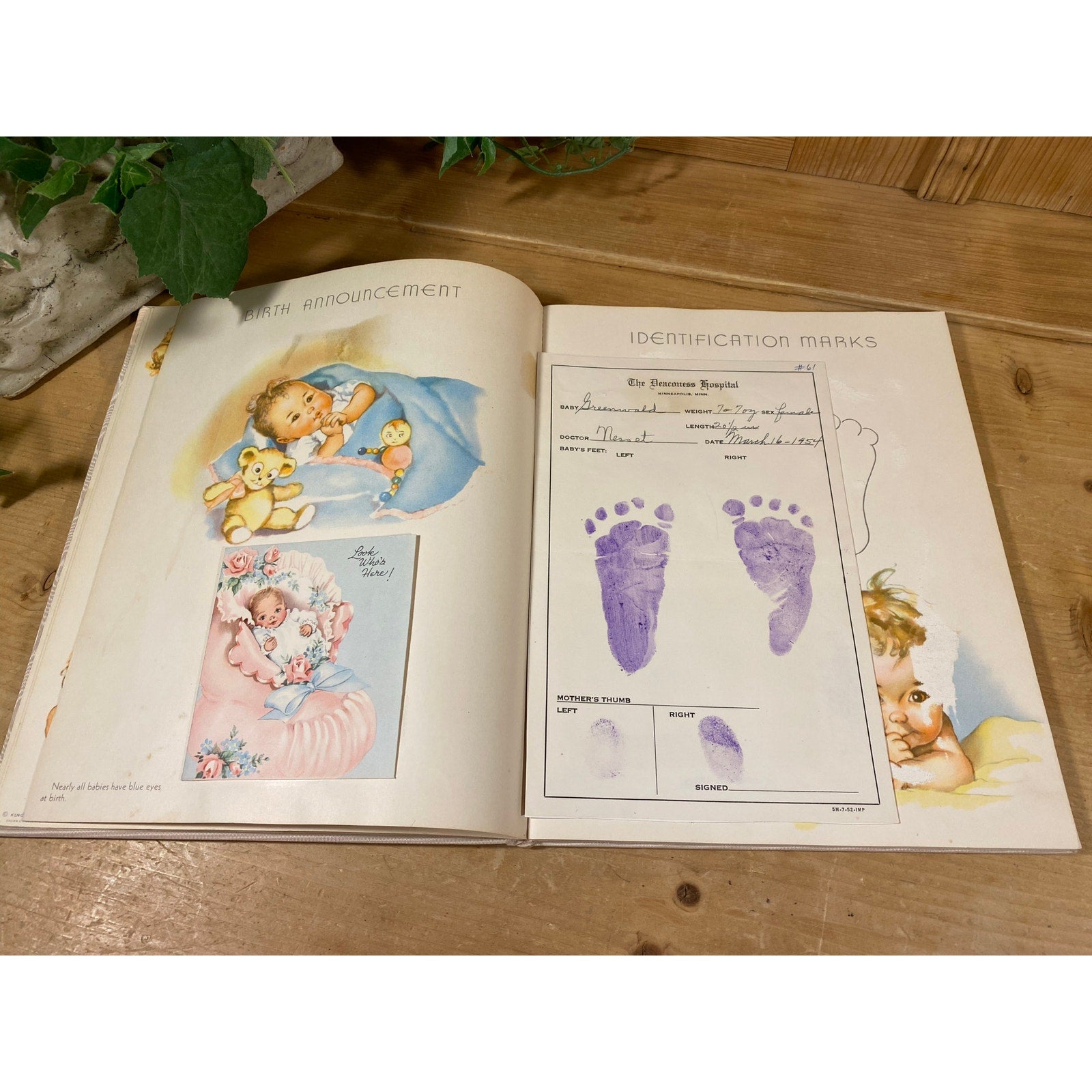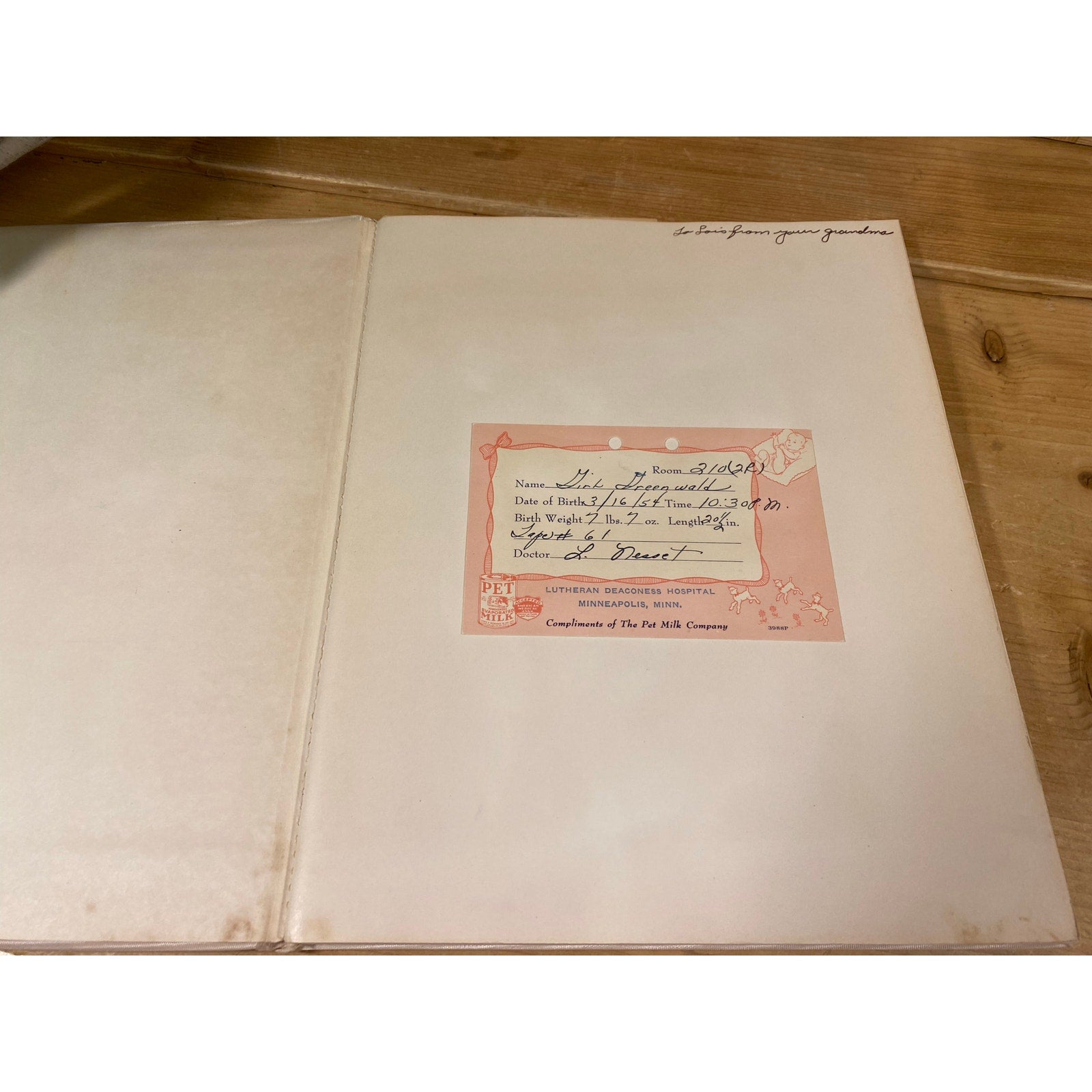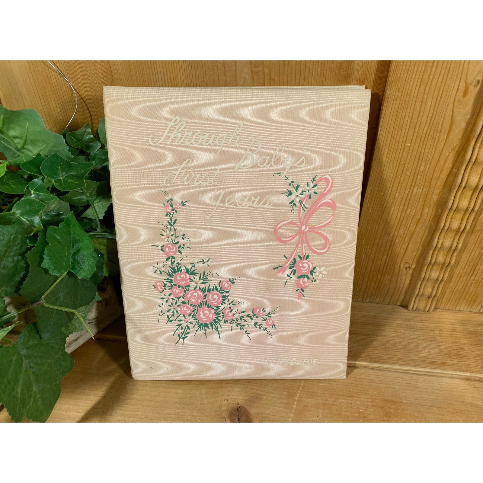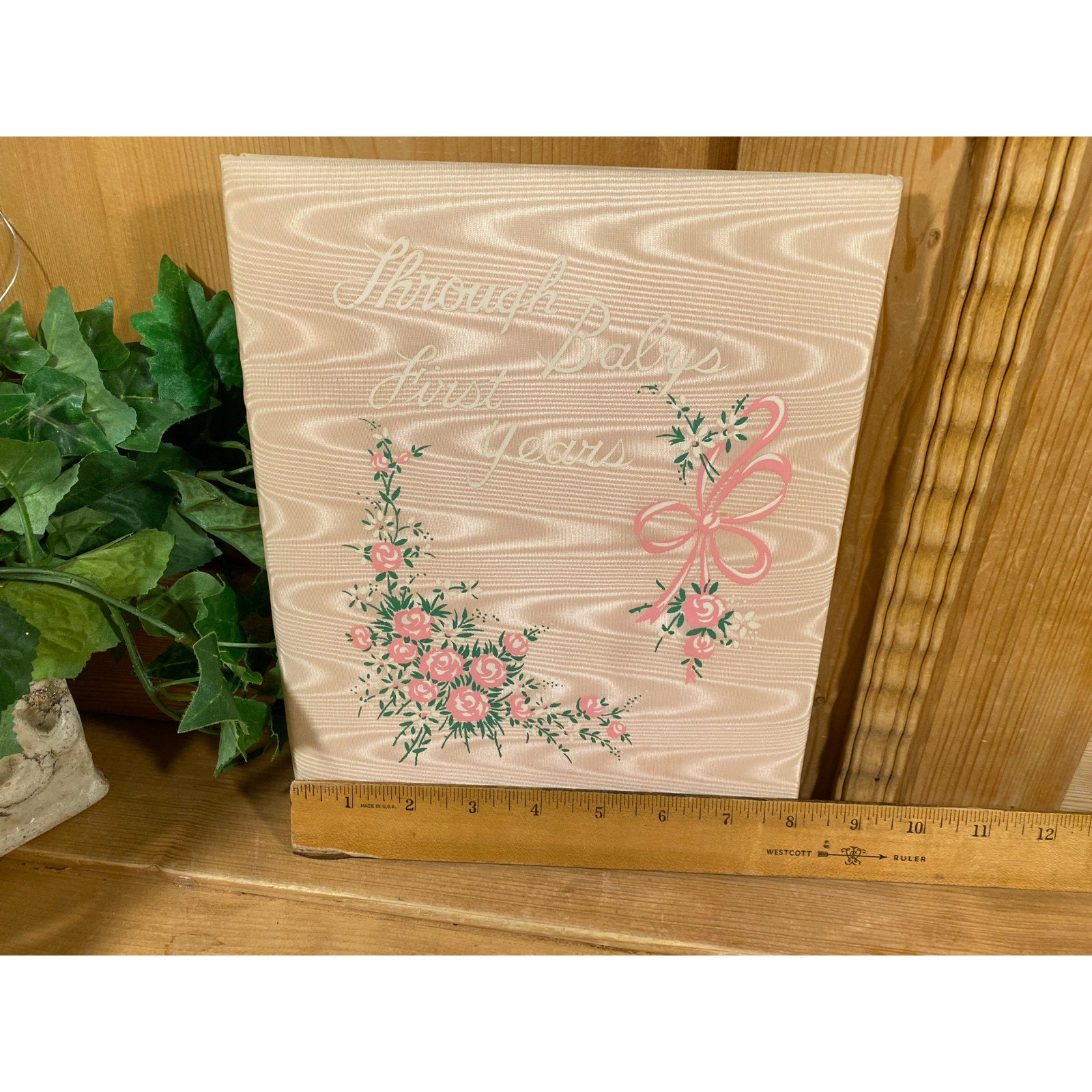Vintage Baby Book (Already Filled - Ephemera About A Baby Born in 1954) | Through Baby's First Years | White and Pink | Moire Fabric Album