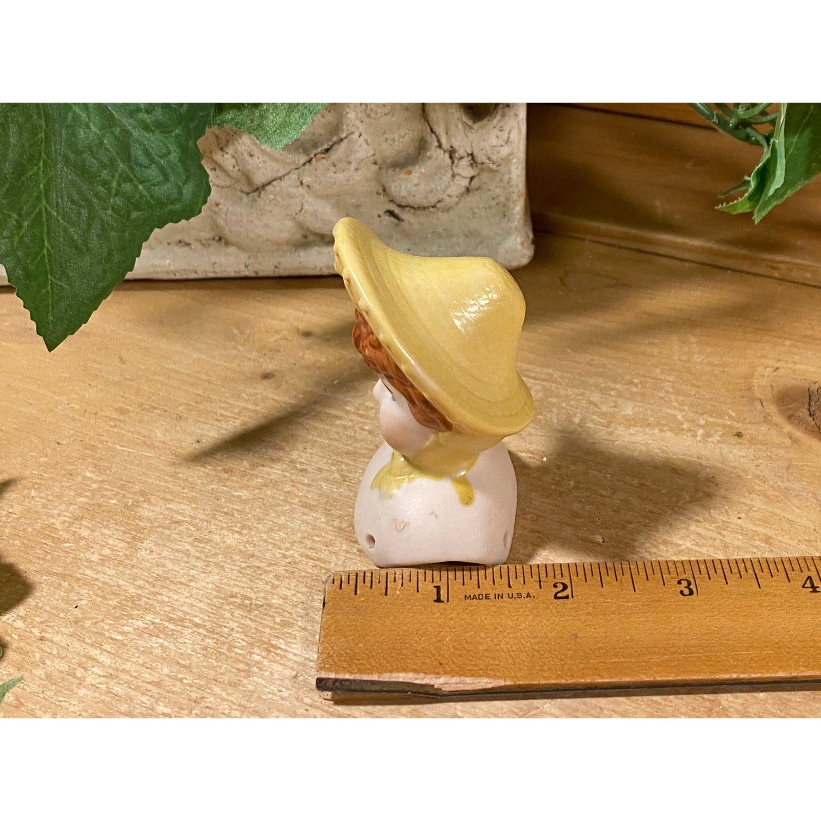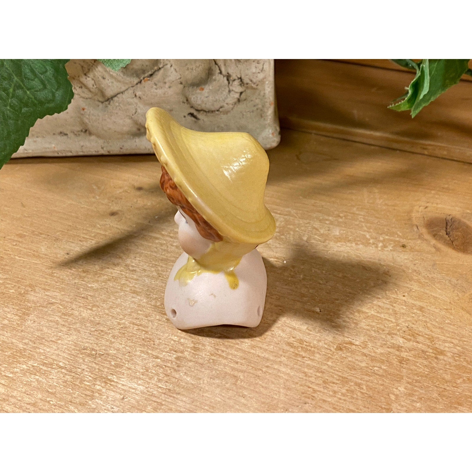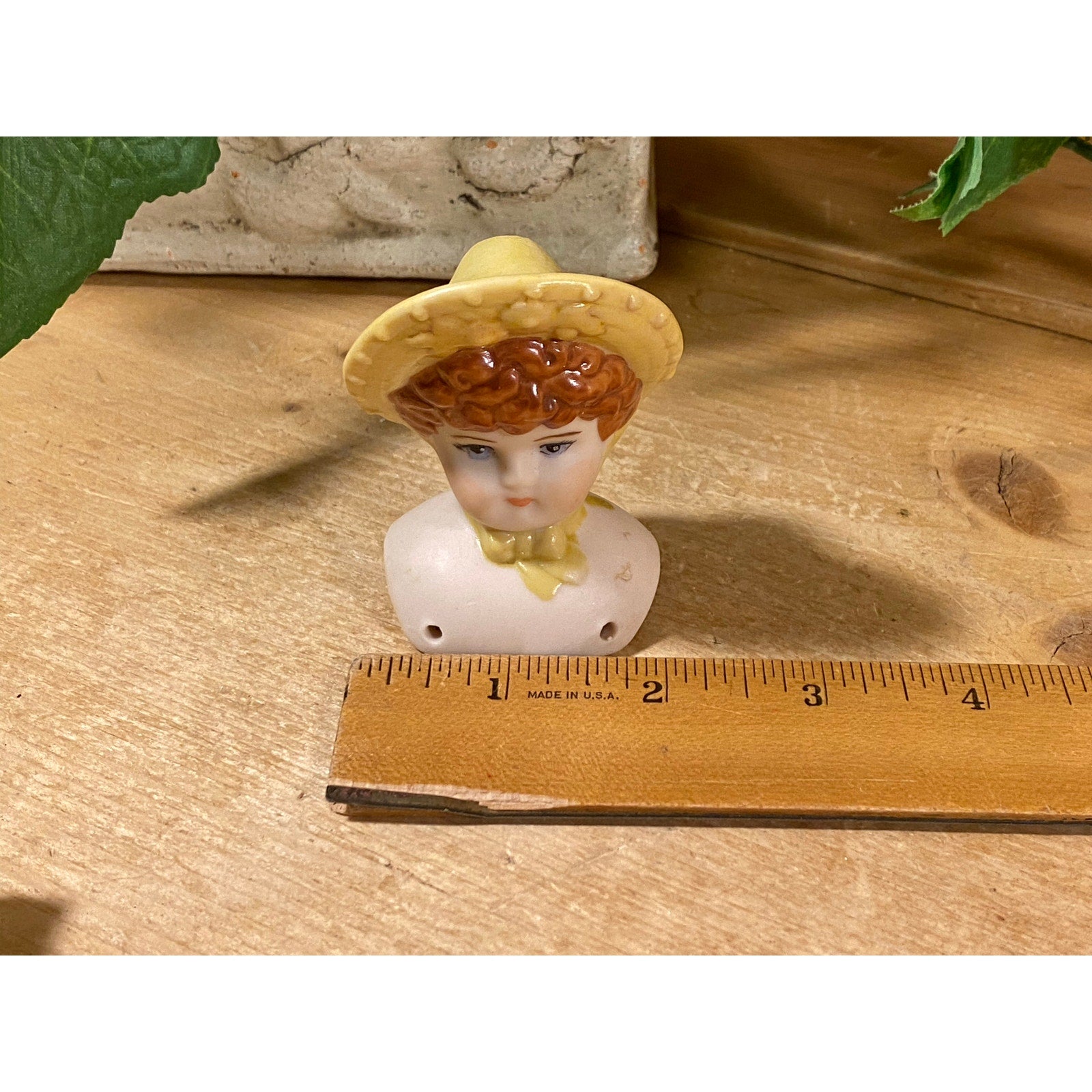Vintage Bisque Porcelain Doll Head with Curly Brown Hair and Bonnet | Bisque Doll Head with Hat | Doll Artist | Doll Making Supplies | Dolls