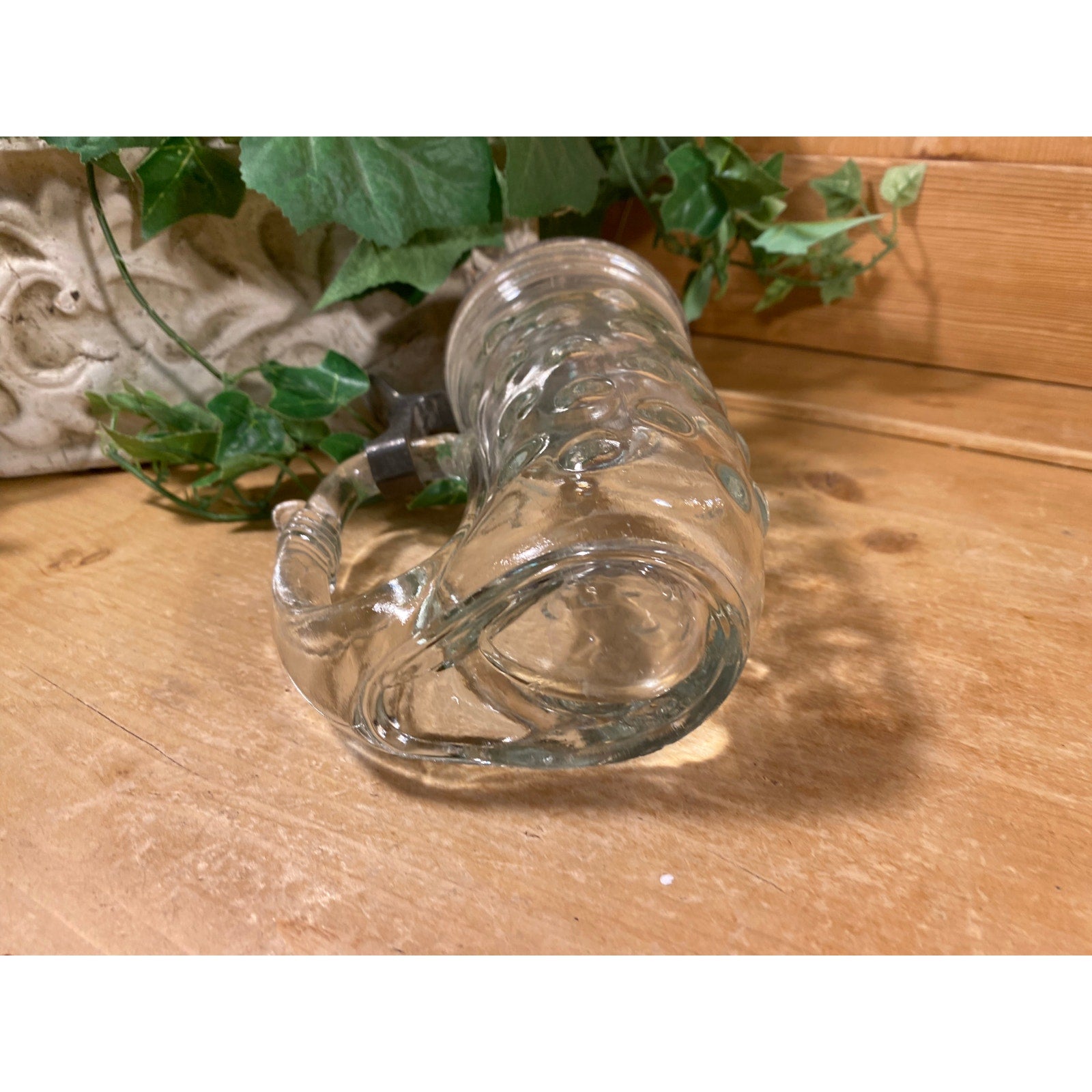 Vintage BMF Glass Coin Dot Horn-Shaped Beer Stein with Hinged Pewter Lid | Bayerische Metallwarenfabrik | 1960s Glass Beer Mug | Academia