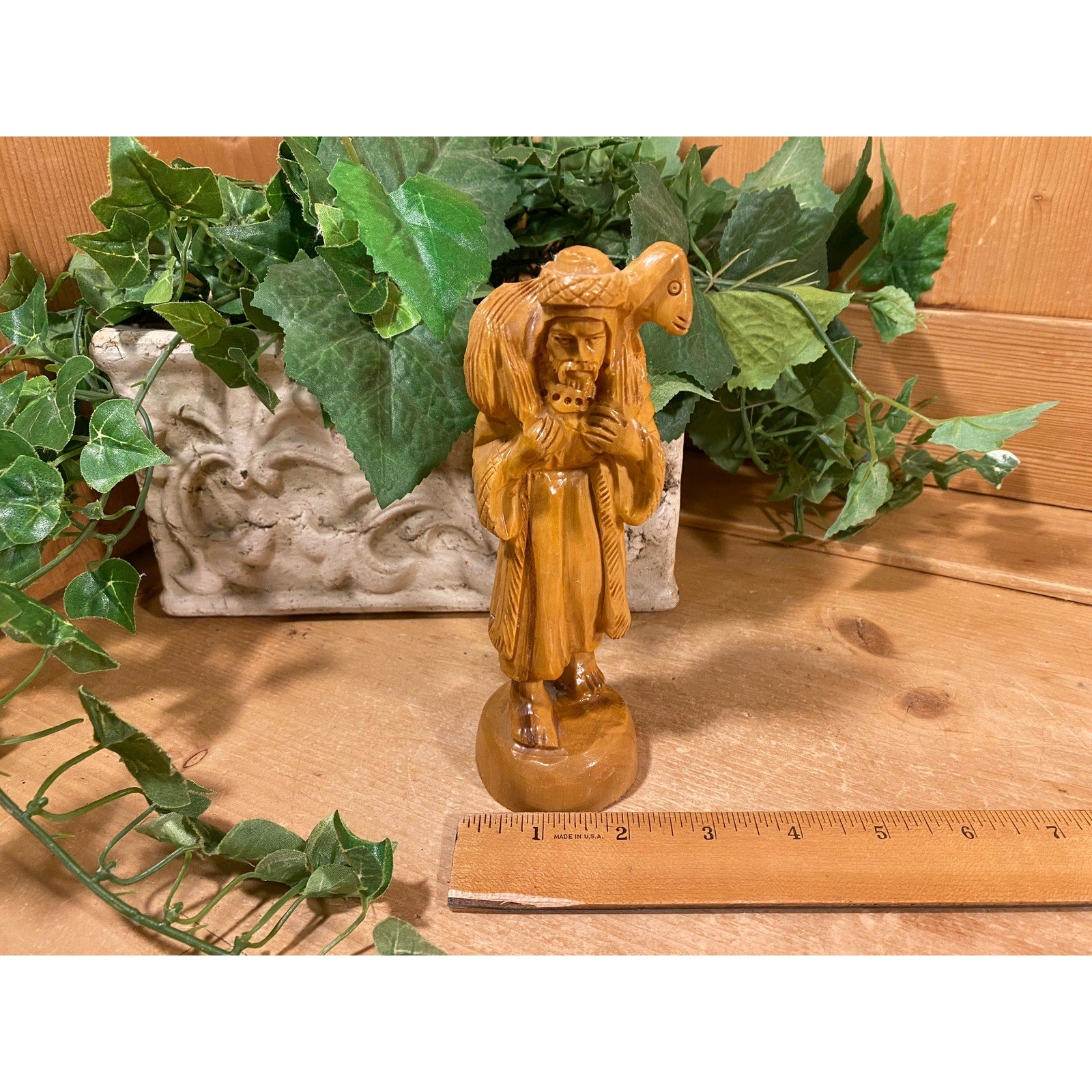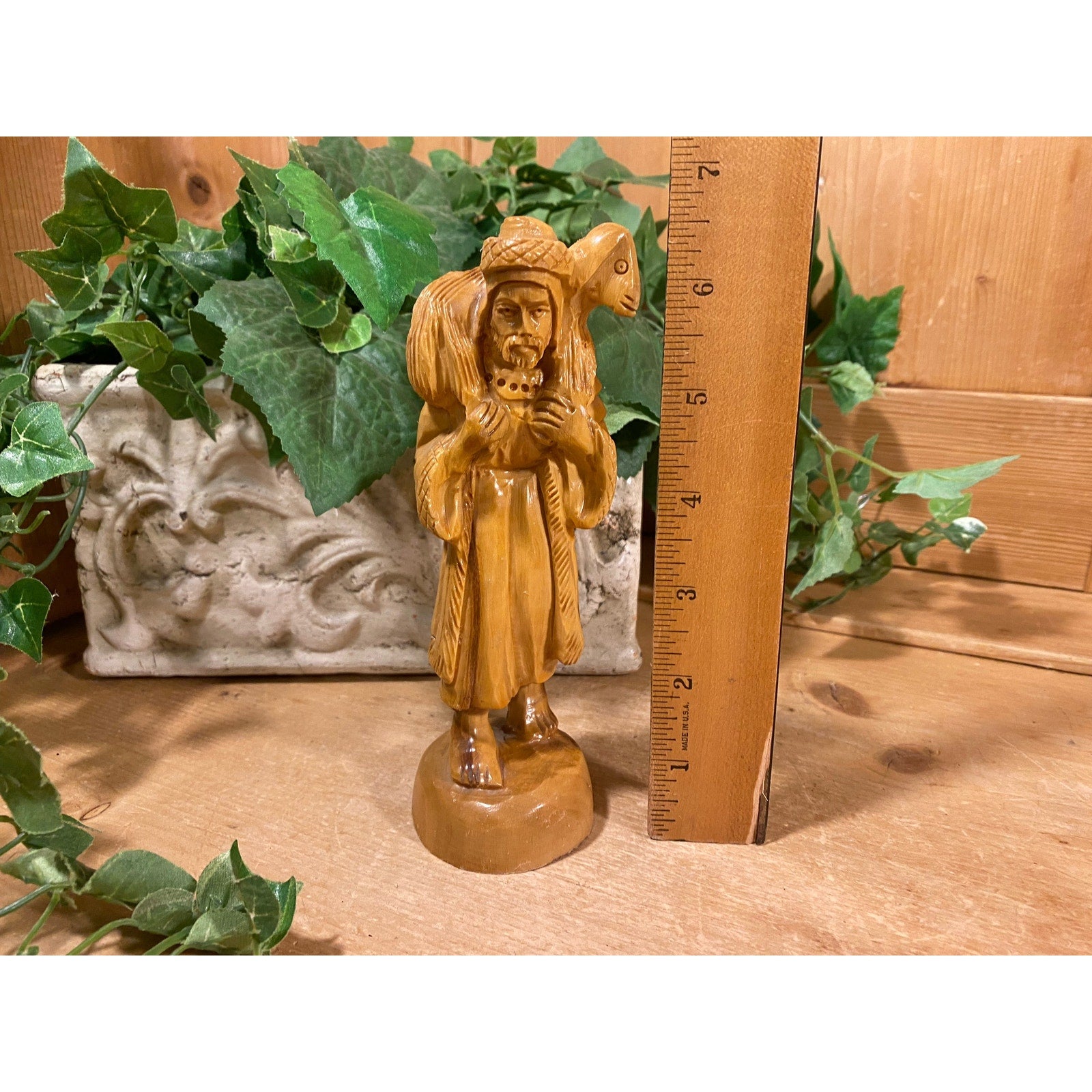 Vintage Carved Wood Shepherd with Lamb Figurine | Religious Decor | Good Shepherd Wooden Figurine | Christian | Farmhouse Shelf Decor | Lamb