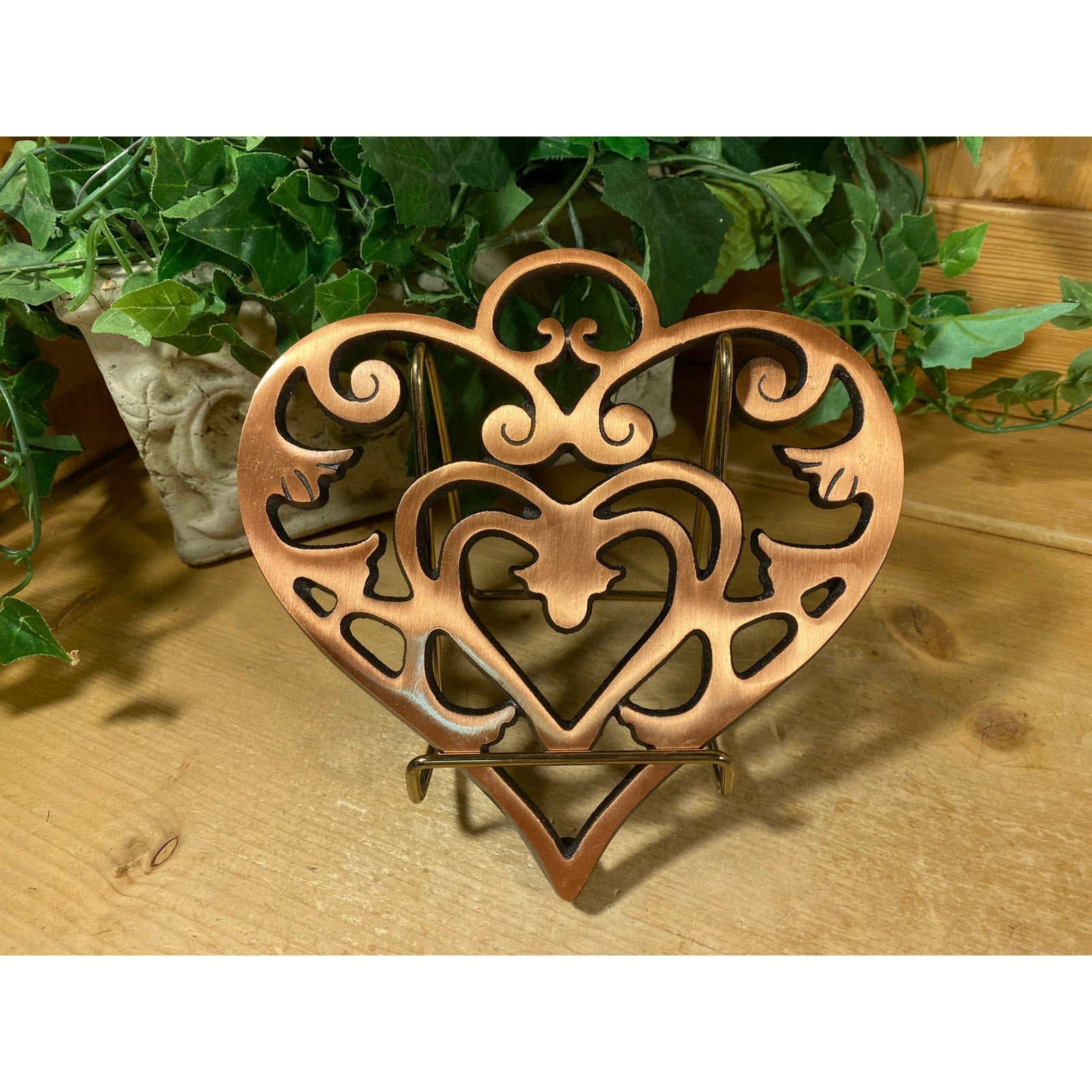Vintage Cast Iron Copper Heart Trivet | Pampered Chef | 2006 | Round-Up From the Heart | Coppertone Metal Heart Trivet | Farmhouse Kitchen