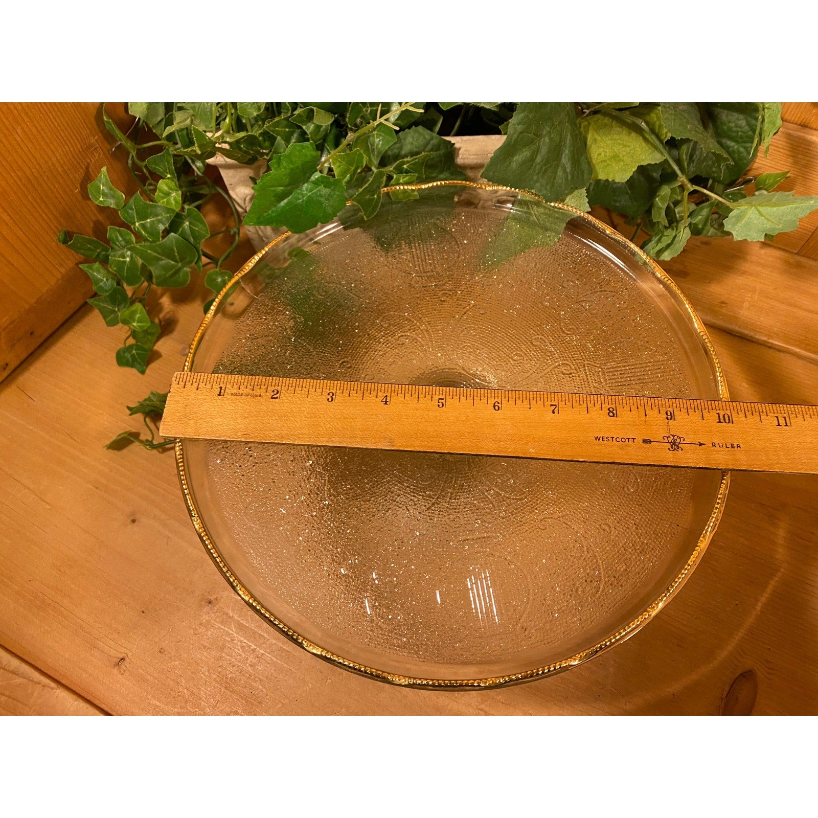 Vintage Clear Glass Pedestal Cake Stand with Gold Bead Trim | Jeanette | Lyre & Harp | Victorian Pedestal Cake Serving Plate | Dessert Stand