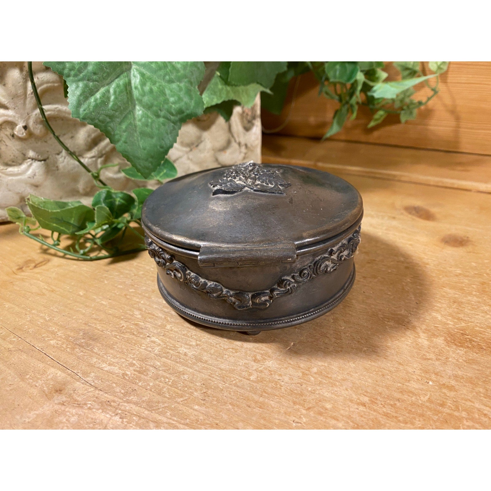Vintage Edwardian Silver Plated Trinket Box with Embossed Grapes | E.G. Webster & Son | Aug 25, 1908 | Hinged Round Jewelry Box | Victorian