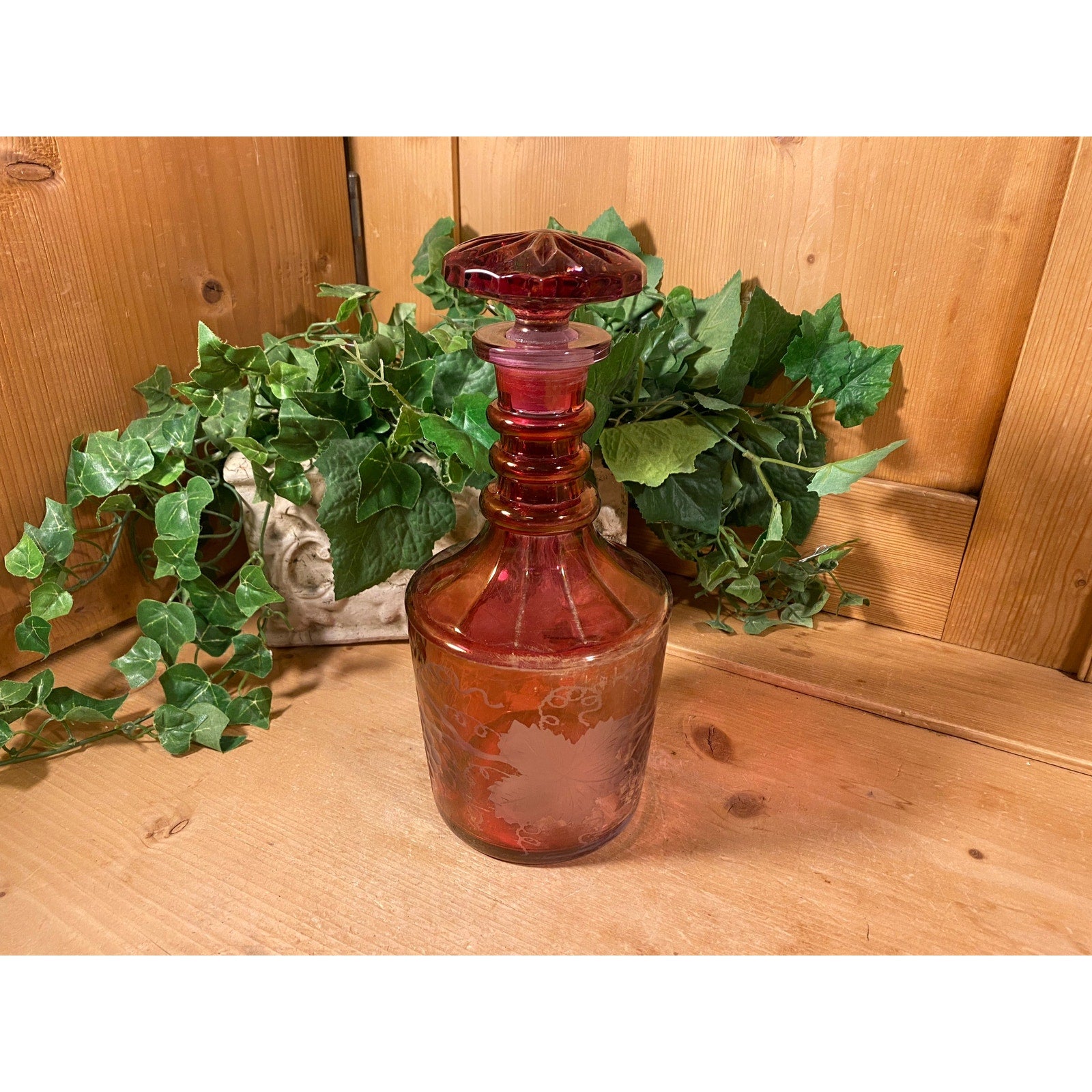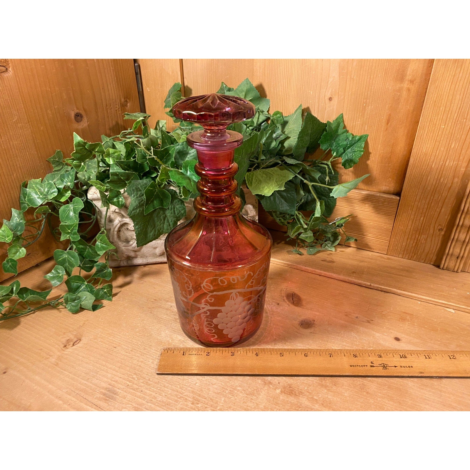 Vintage Etched Glass Wine Decanter with Glasses - Set of 5 | Imperial | Etched Glass with Grapes, Grapevines | Wine Decanter Set | Victorian