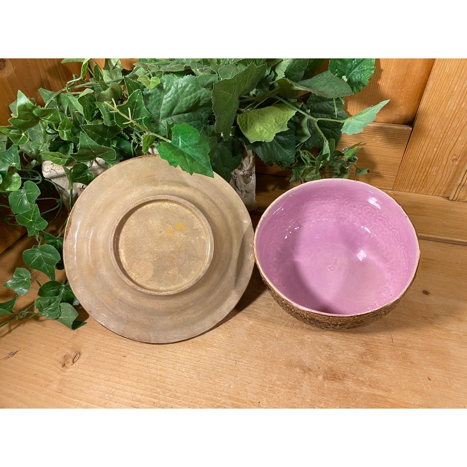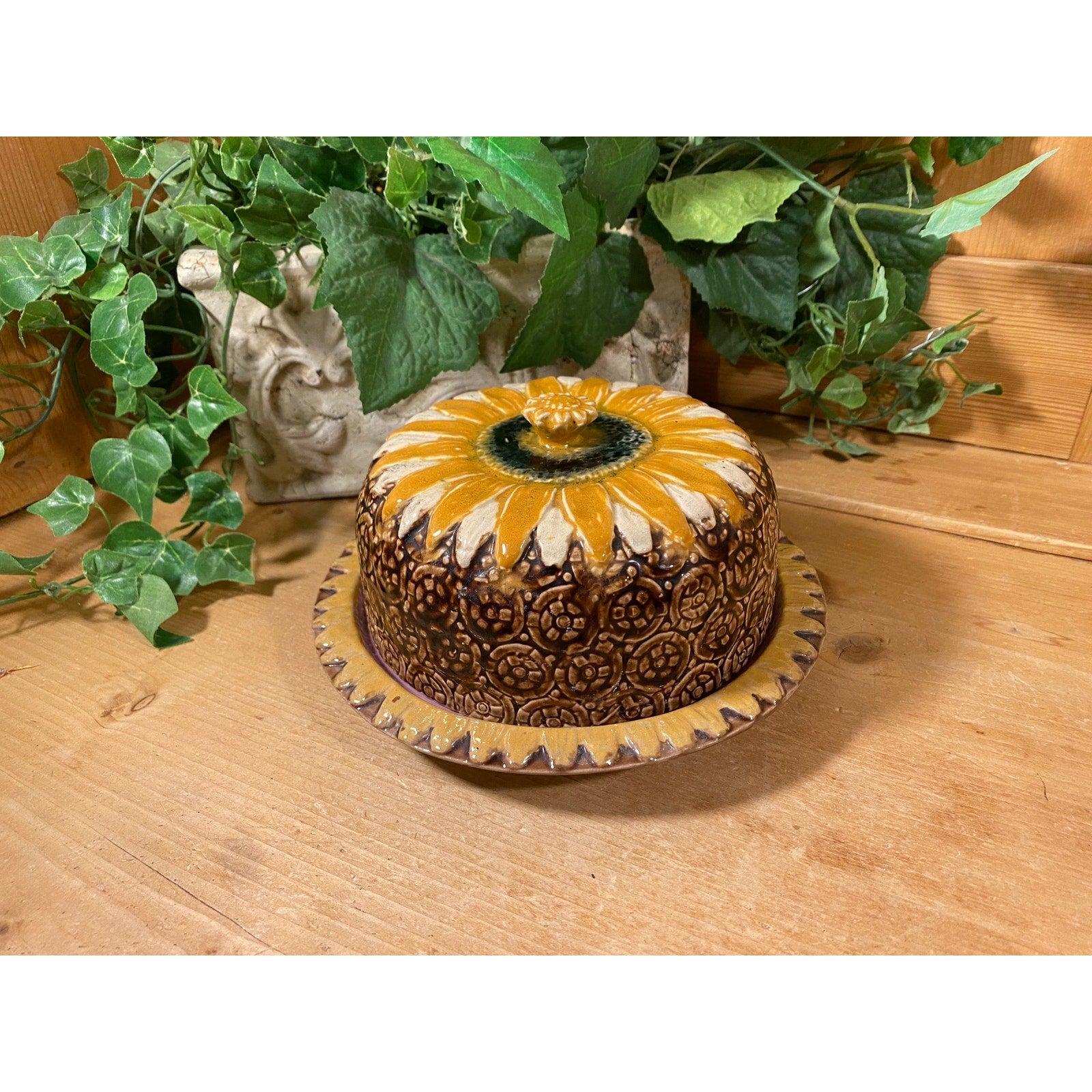 Vintage Flowered Majolica Pottery Cheese Dome with Lid | Yellow and Brown | Cottagecore Decor | Shabby Chic | Floral Victorian Table Decor
