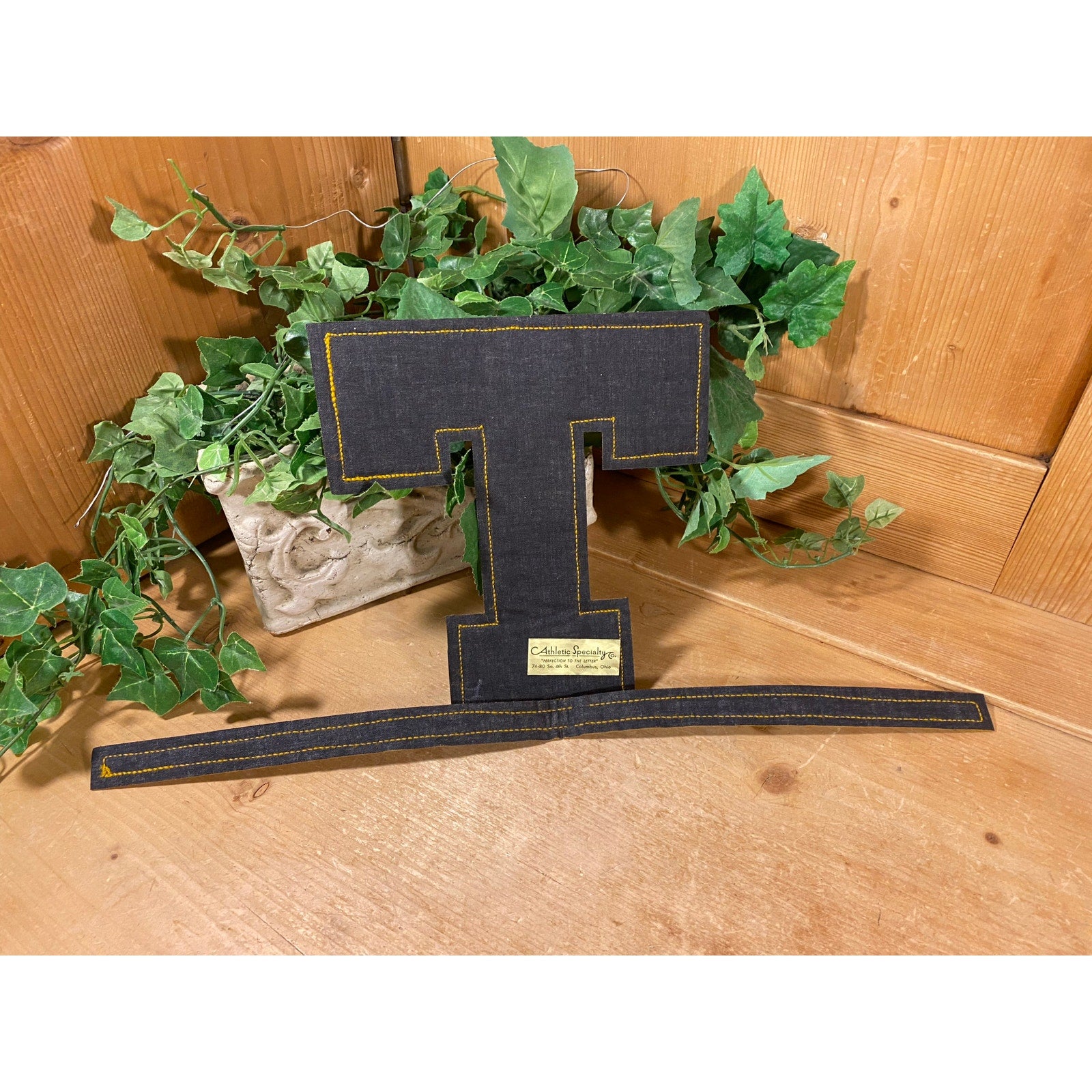 Vintage Letter Jacket Patch - Yellow Letter "T" | Athletic Specialty | Dark Yellow Varsity Letter T Patch | Retro Varsity Jacket Letter "T"