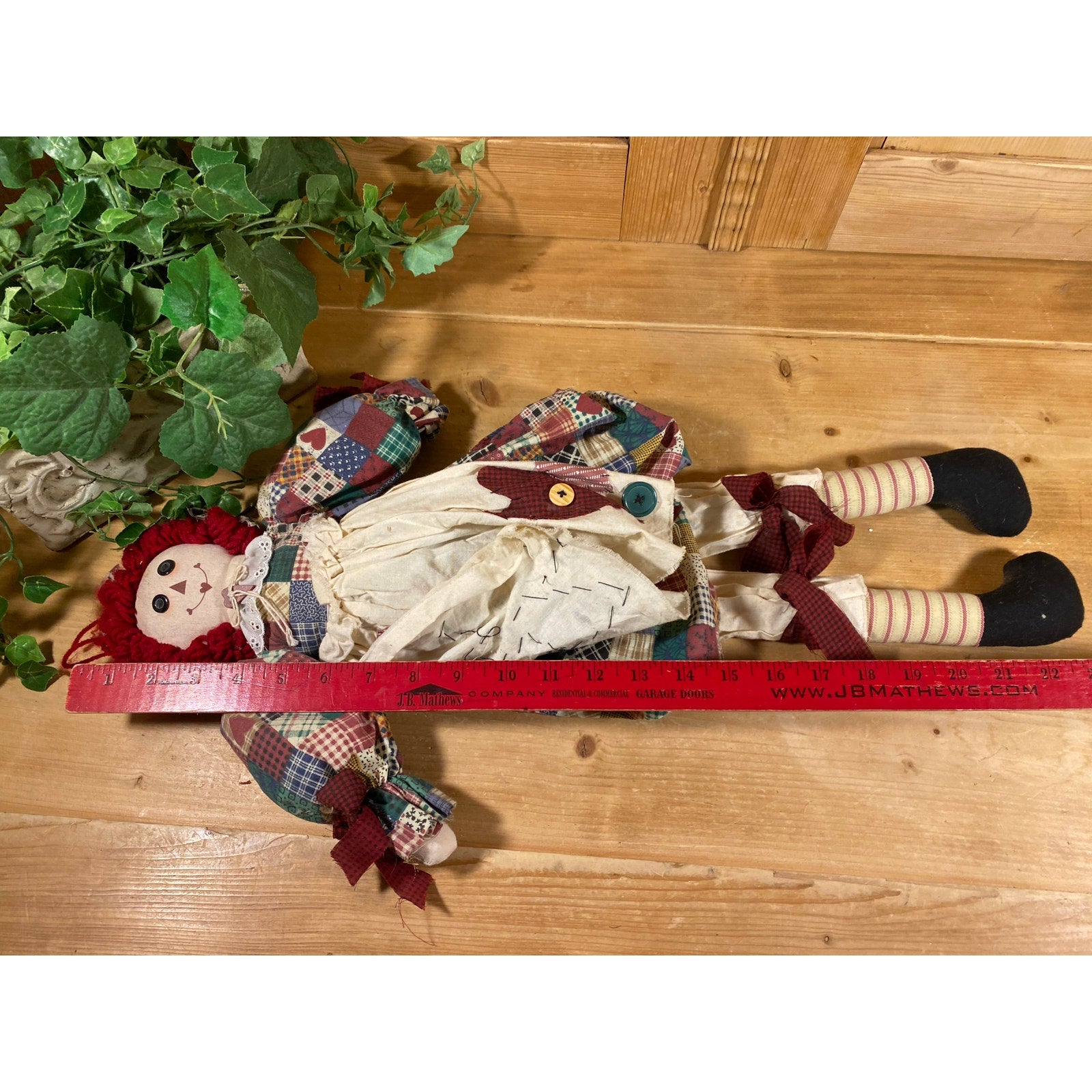 Vintage Long-Limb Raggedy Ann | Large Fabric Raggedy Ann Doll with Yarn Hair | Cloth Raggedy Ann Doll with Patchwork Dress, White Pinafore