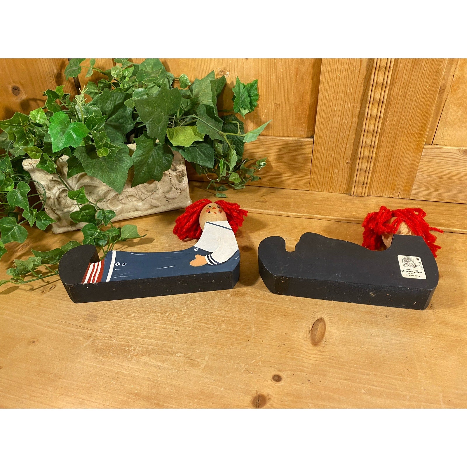 Vintage Raggedy Ann and Raggedy Andy Wooden Shelf Sitters with Yarn Hair - Set of 2 | Nursery Decor | Raggedy Ann & Andy Wood Doll Bookends