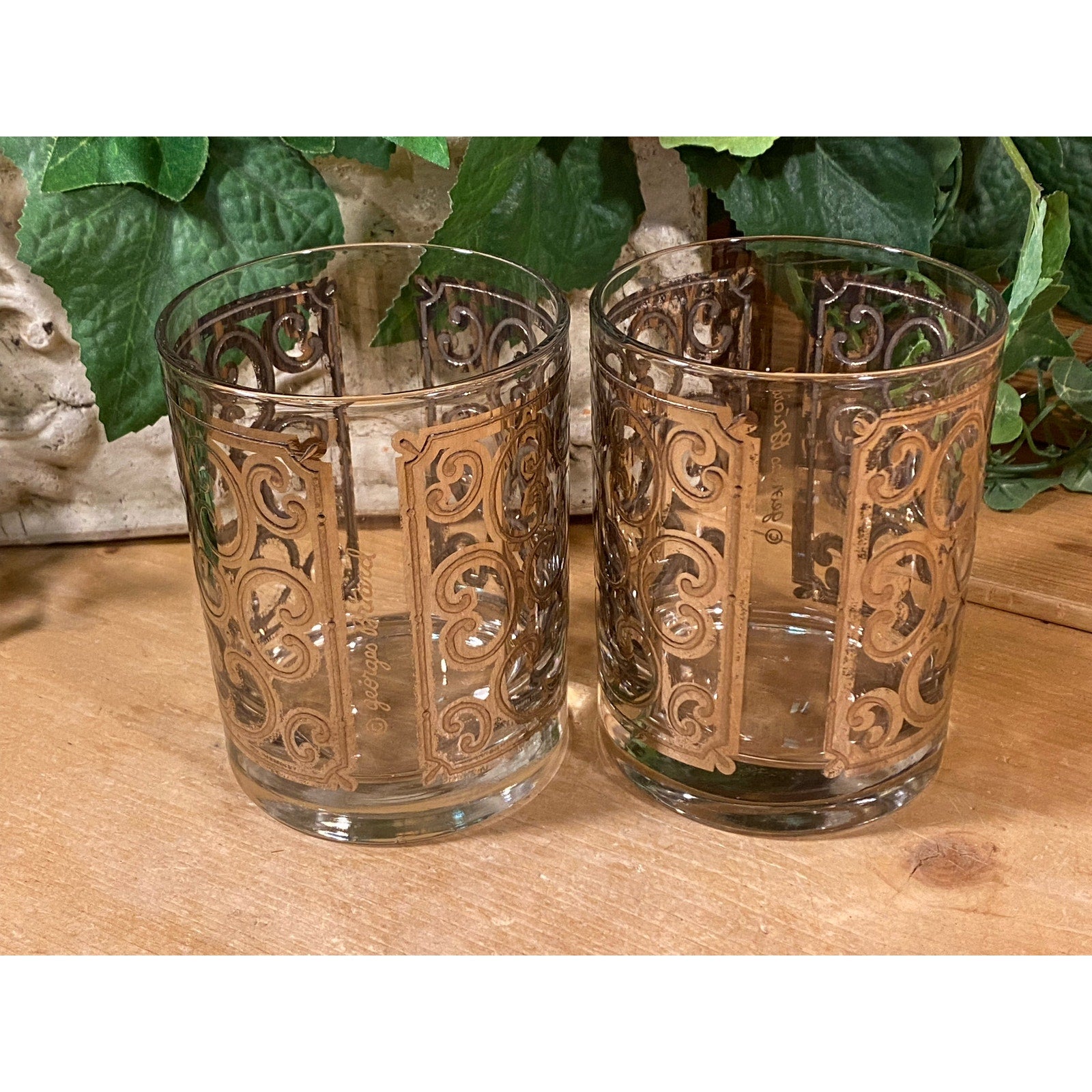 Vintage Spanish Scroll Double Old Fashioned Glasses - Set of 2 | Georges Briard | 22K Gold Filigree | Academia | Glasses with Gold Accents