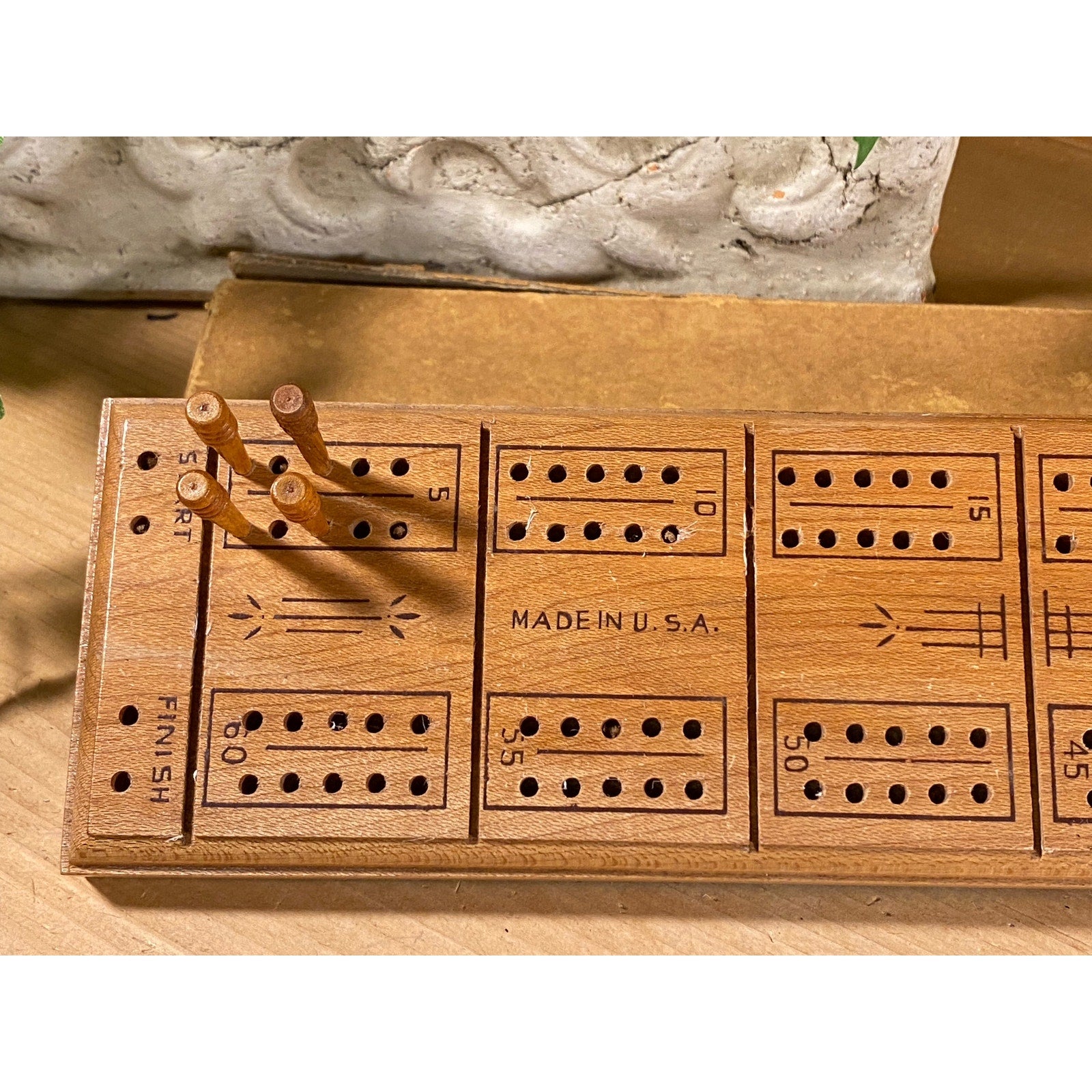 Vintage Wooden Lowe Cribbage Board | Wood Cribbage Board (no cover on peg holder) | Vintage Wooden Cribbage Board | Classic Board Games
